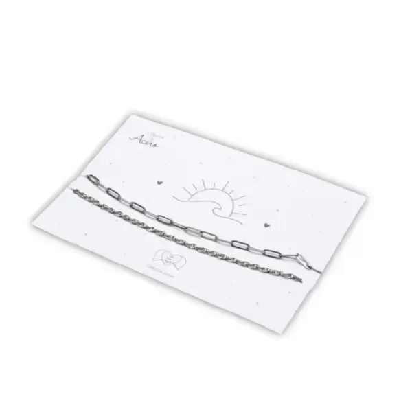 Tobillera de doble cadena de acero. Este diseño moderno y versátil es ideal para darle un toque especial a tu estilo diario. Viene acompañada de una tarjeta perfecta para regalar o para añadir un toque de estilo a tu colección. 🎁
