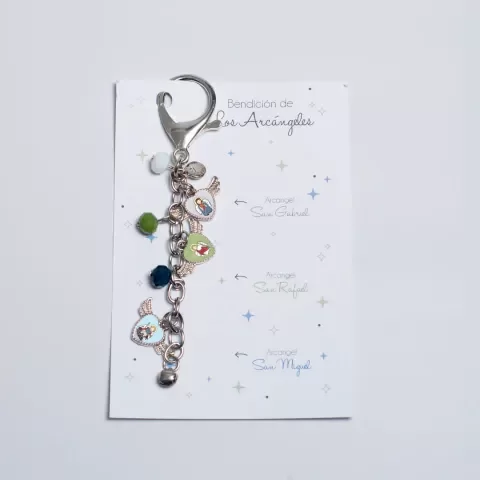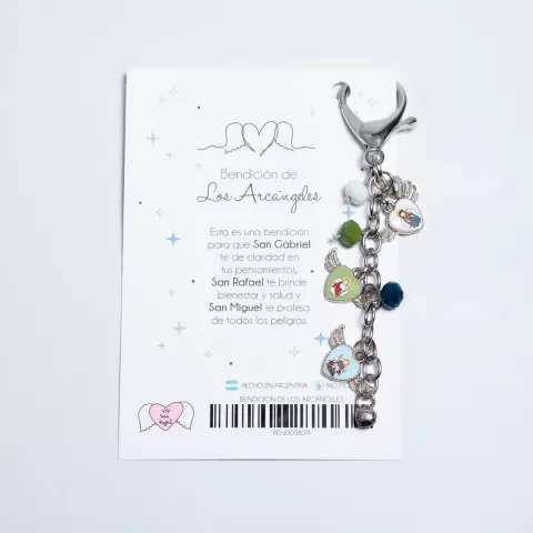 DESCRIPCIÓN Esta bendición, que puede ser utilizada como llavero o para decorar cualquier accesorio como carteras o mochilas, te acompañará con su protección constante.