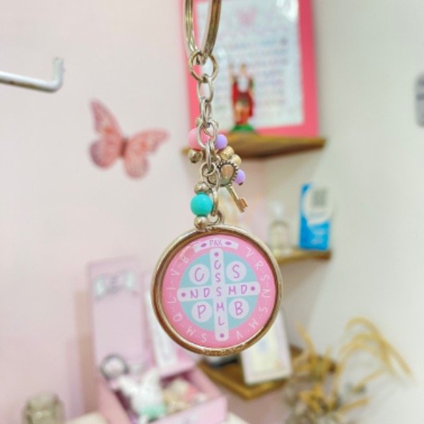Llavero de aleación de metales con dije principal redondo de 3 cm. de diámetro con dijecitos de llave corazón, florcita y cuentas rosa, lila y aqua. Viene presentado en un packaging ideal para regalar🎁. Los llaveros son complementos pensados especialmente para obsequiar y lograr transmitir un sentimiento que acompañe al agasajado todos los días✨.