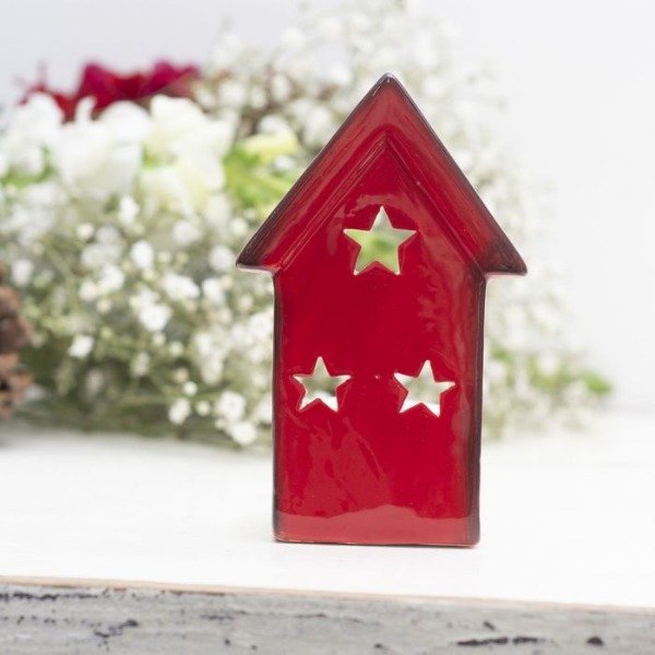 Portavela de cerámica, incluye velita. Ideal para decorar tu casa en Navidad, o para hacer un regalito navideño.