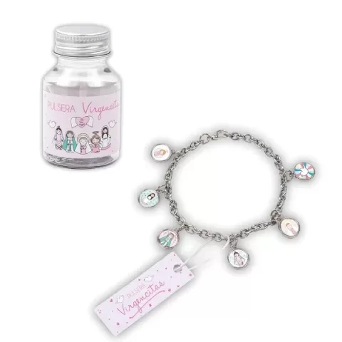 Pulsera de cadena de acero quirúrgico con 6 dijes de aleación de metales, con la imagen de Angelito de la Guarda, Espíritu Santo, Virgen Niña, Virgen de la Sonrisa, Nuestra Señora de Lourdes y Medalla Milagrosa.