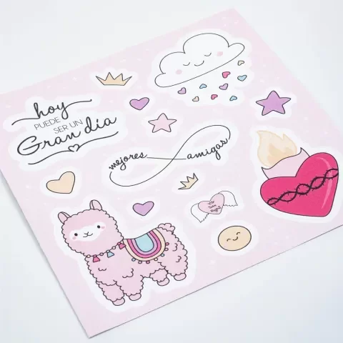 ¡Dale un toque especial a tus cuadernos, laptop o cualquier superficie que desees con esta plancha de stickers súper lindos! Cada sticker está diseñado especialmente para agregar un toque de color y alegría a tu día. Te recomendamos colocarlos en lugares que no estén en contacto constante con tus manos, ya que el roce continuo podría afectar el color con el tiempo.